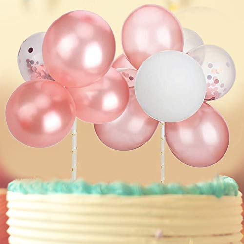 Sunshine smile 14 PCS Coriandoli Palloncino Cupcake Topper,Coriandoli Palloncino Cupcake Decorazione,Confetti Topper Torta Topper,Decorazione Torta di Compleanno Oro,Rosa Topper per Torte Compleanno