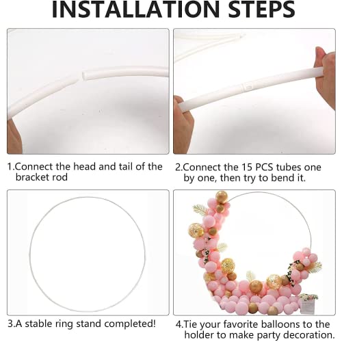 BALLOON RING FRAME KIT: questo set contiene 15 bastoncini in fibra di vetro per palloncini, 1 punto adesivo per palloncini, 1 nastro per palloncini, 1 catena per palloncini. Realizzato in resistente materiale PVC, un unico pezzo, facile da trasportare e riutilizzabile. Il telaio ad anello montato ha un diametro di 150 cm.