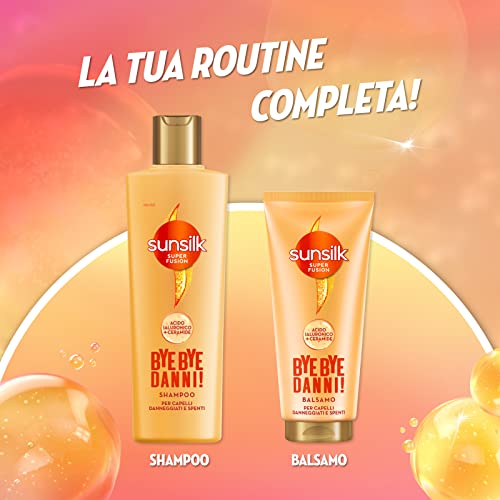 Sunsilk, Balsamo Bye Bye Danni, Balsamo per Capelli Danneggiati e Spenti, Formula Super Fusion con un mix di Acido Ialuronico e Ceramide, Ripara da 7 Tipi di Danni ai Capelli, 180 ml