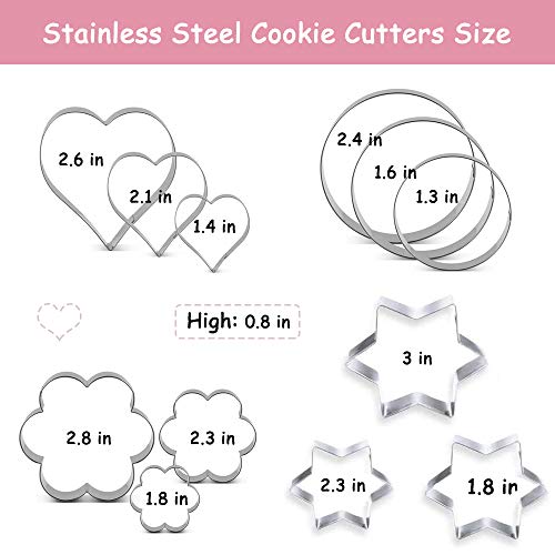 【Formine Biscotti Set】Con questo fantastico set di acciaio inossidabile formine per biscotti che include 12 pezzi 3 dimensioni diverse fiore, stella, cuore, cerchio stampi.