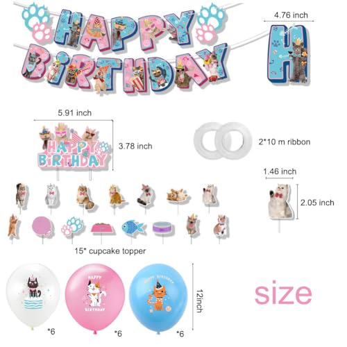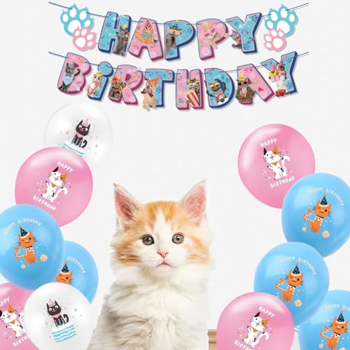 【Kit di Compleanno】 Il pacchetto include 1 banner di buon compleanno, 1 Decorazioni di torta, 15 Cat Cupcake Toppers, 18 palloncini in lattice, 2 Gatto palloncini foglio di alluminio.