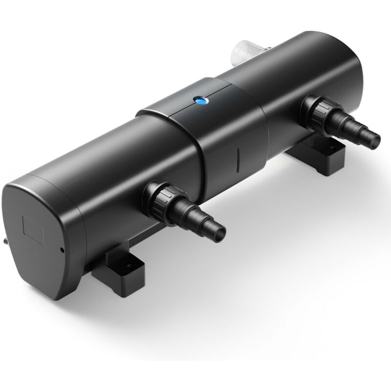 Potenza: 72 W - suddivisa in due lampade da 36 W ciascuna Adatto per laghetti fino a 90.000 l Portata consigliata massima: 8.000 l/h, per una pressione max. di 0,3 bar Flusso d'acqua a spirale all'interno del chiarificatore per laghetti Protegge il laghetto dalla crescita di alghe, batteri e muffe Il chiarificatore per laghetti CUV-2072 di SunSun ha la funzione di per tenere sotto controllo la formazione di alghe e la crescita di batteri o muffe nel laghetto da giardino. Il sistema prevede il passaggio a spirale dell'acqua nell'alloggiamento del chiarificatore, davanti a una lampada UVC. Nell'alloggiamento del CUV-2072 è infatti installata una guida idrica a forma elicoidale. La radiazione UVC di questa lampada PL uccide le alghe nocive, i batteri e i germi e riduce la formazione delle alghe. Il chiarificatore per laghetti è dotato di due lampade UVC, ciascuna da 36 W, ed è adatto a laghetti di dimensioni fino a 90.000 l. La portata consigliata è di 8.000 l/h e la pressione massima è