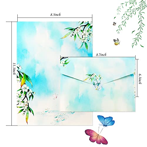 SUNSWEI - Set di carta per scrivere formato A4, 32 fogli di carta da lettere in colori assortiti e 16 buste