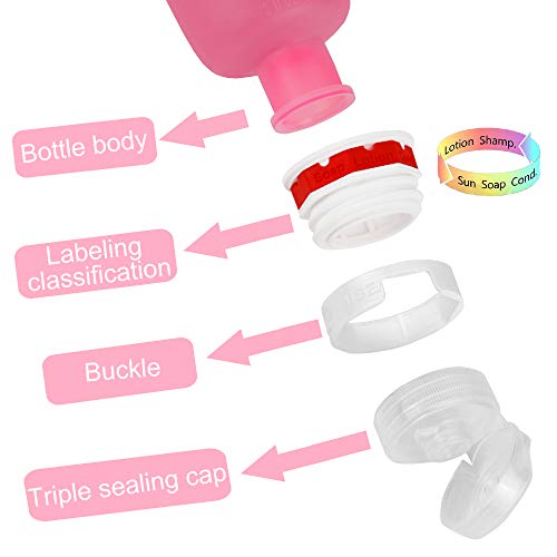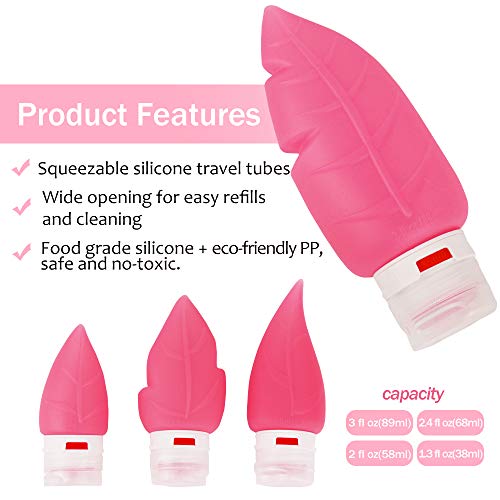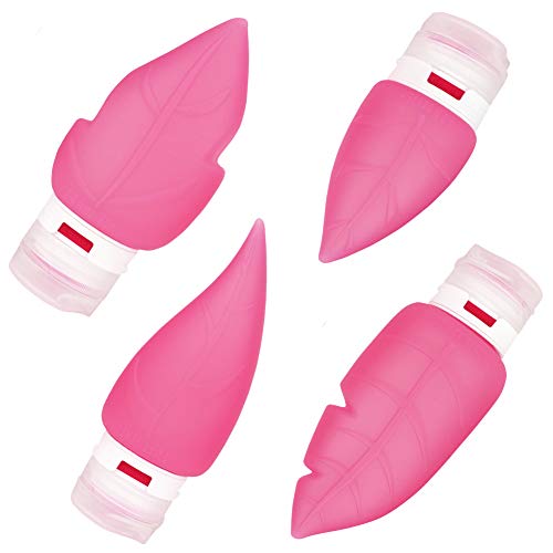 Suntapower Set di bottiglie da viaggio [4PCS], contenitore da viaggio in silicone resistente agli alimenti, set da viaggio comprimibile Contenitori da toilette cosmetici - Rosa