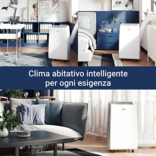 ❄️ WEEE - DE 22789834 | CARATTERISTICHE E ACCESSORI: tubo di scarico, filtro antipolvere lavabile, alloggiamento cavi, impugnatura per il trasporto, barra scorrevole per finestre con adattatori, tubo di drenaggio, ruote easy-roll, telecomando (2 batterie AAA non incluse)