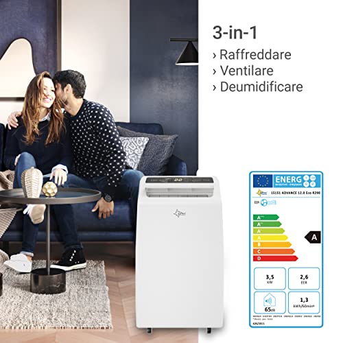 SUNTEC condizionatore mobile Advance 12.0 Eco R290 | Per locali fino a 60 mq | Tubo di scarico | Raffreddamento e deumidificazione con refrigerante ecologico | 12.000 BTU/h | Per abitazioni e uffici