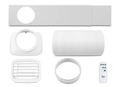 Include tubo di scarico (~ 1,50 m), listello scorrevole per finestra, tubo di drenaggio, adattatore dispositivo + adattatore terminale del tubo, ruote scorrevoli