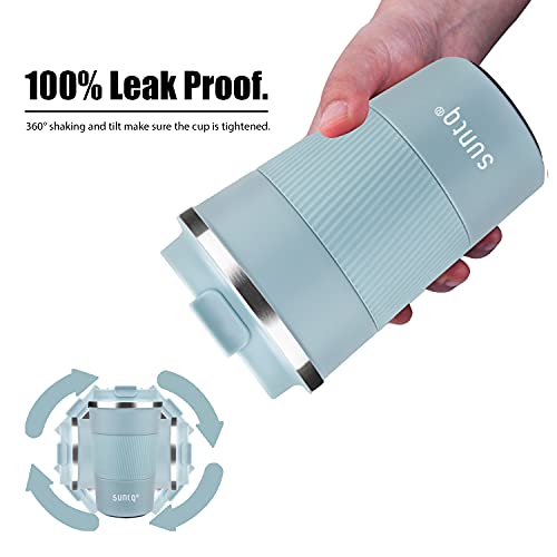 Stile funzionale, dimensioni perfette - Le tazze da caffè SUNTQ sono state consapevolmente progettate con un rivestimento a polvere opaco con caratteristiche a prova di perdite e di fuoriuscite. Il semplice coperchio a vite con apertura a scatto a prova di spruzzi, mantiene la bevanda al sicuro e comoda da trasportare in viaggio. Un pratico beccuccio rende più facile bere quando si è in movimento. Potrai trasportare comodamente la tazza da caffè ermetica in mano o inserirla in un portabicchieri.
