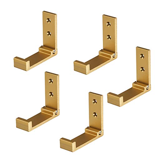 Suntrade, appendiabiti pieghevole, 5 pezzi, gancio singolo, pieghevole, montaggio a parete e porta, colore: oro