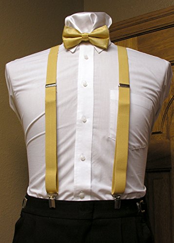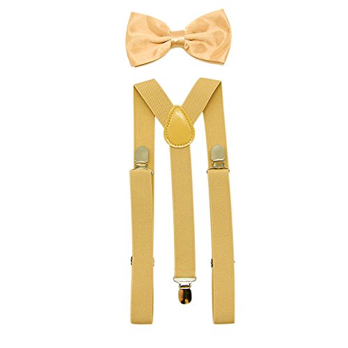 SunTrader Bretelle elastiche a forma di Y regolabili con clip e papillon (oro), Oro, Taglia unica
