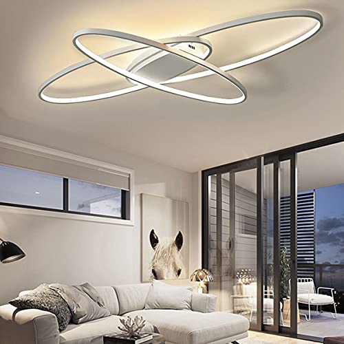 J.SUNUN Modern LED Camera da Letto Plafoniera Ovale Lampada da Soffitto Soggiorno Camera Plafoniere Dimmerabile 3000-6500K con Telecomando Tavolo da Pranzo Cucina Luce Pranzo Lampadari 130CM 90W