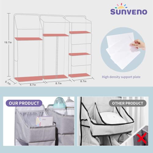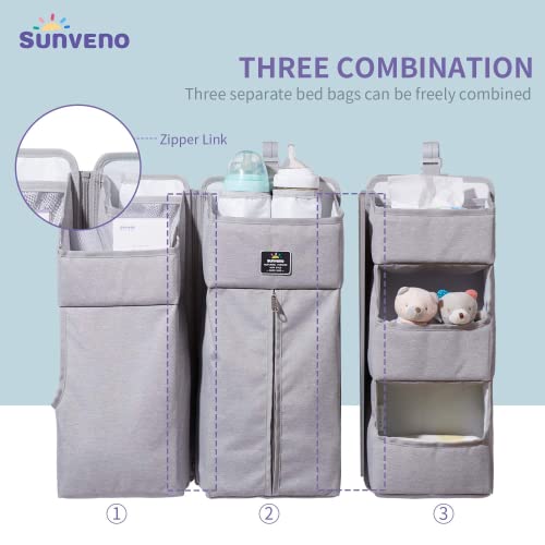 SUNVENO Organizer per Asilo Nido Set per Pannolini per Bambini, Organizer per Pannolini Staccabili 3-in-1 Sacchetti Portaoggetti Appesi per Culla, Fasciatoio o Parete, Grigio