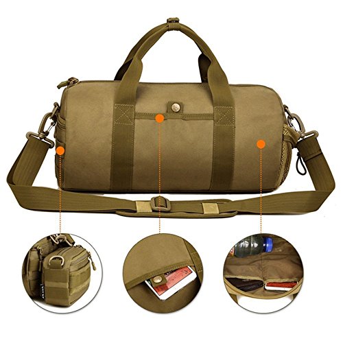 SUNVP Tactical Duffle Borse Molle Borsetta Militare Esercito Marsupio da Viaggio Spalla Borsa Crossbody Confezione Piccola Valise per Sport Campeggio Escursionismo, Colore Nero/Marrone