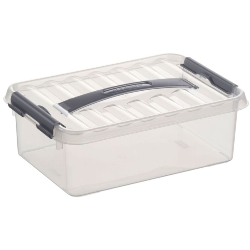 Contenitore Sunware Q-LineUn contenitore pratico e pratico con 4 litri di spazio per riporre un'ampia varietà di articoli al riparo da umidità e polvere. Considera, ad esempio, materiali per bricolage, matite, pennarelli, lumini e tutti i tipi di altri fronzoli per la casa. Questa scatola portaoggetti è ottima anche per riporre viti, chiodi, dadi e bulloni per mantenere il garage in ordine o anche per riporre in sicurezza Lego, Duplo e Playmobil. Questa scatola è facile da impilare e dotata di robuste clip di chiusura. La robusta maniglia nella parte superiore del coperchio rende la scatola facile da trasportare. Poiché le scatole sono trasparenti, puoi vedere cosa c'è dentro a colpo d'occhio. Puoi anche conservarvi gli alimenti, perché sono sicuri per gli alimenti. Inoltre sono anche privi di plastificanti pericolosi (senza BPA) Contenuto: 4 litri Colore: trasparente/grigio!