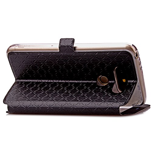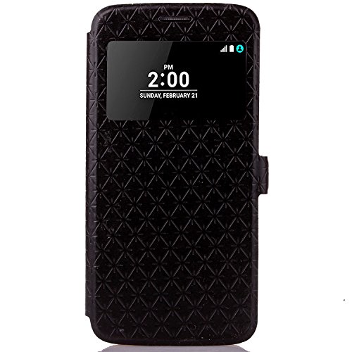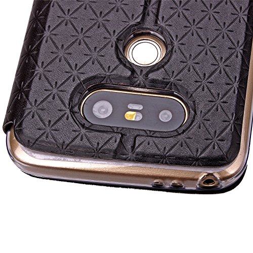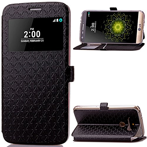 SUNWAY LG G5 Case, [Ling Grid Series] Premium Pu Leather TPU Card Slot Window View Flip Slim Cover Case with Stand Holder for LG G5 - Black