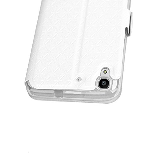 SUNWAY Huawei Y6 Case, [Ling Grid Series] Premium Pu Leather TPU Card Slot Window View Flip Slim Cover Case with Stand Holder for Huawei Y6/4A - White