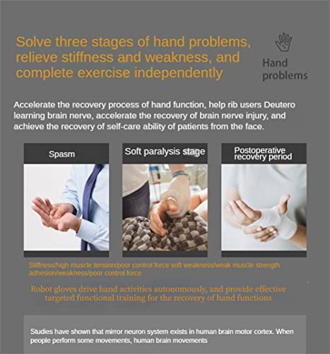 ☻ 【ATTREZZATURA AD ALTA TECNOLOGIA PER LA RIABILITAZIONE DELLA MANO】 Il guanto robotico per la riabilitazione dell'emiplegia da ictus viene utilizzato per l'allenamento di riabilitazione della mano. Allenamento riabilitativo per ictus, emiplegia e traumi. Aiuta te o la tua famiglia a riprendervi più velocemente!
