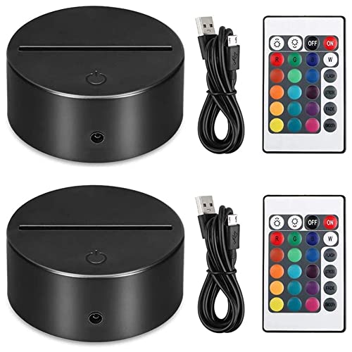 Sunwes Base per Lampada un Luce Notturna un LED 3D da 2 Pezzi + + USB, Supporto per Esposizione di Luci un 16 Colori per Acrilico Nero