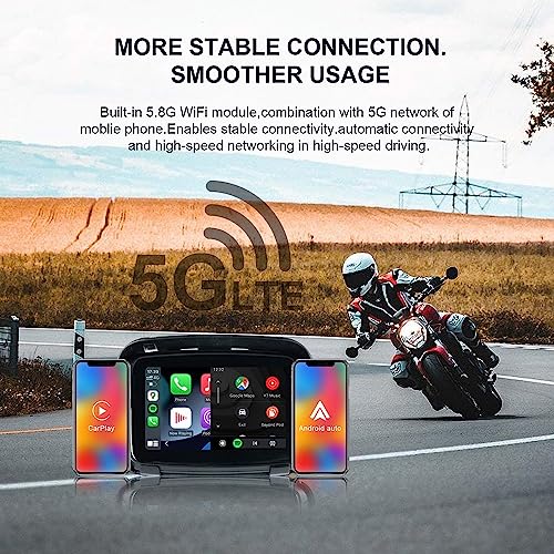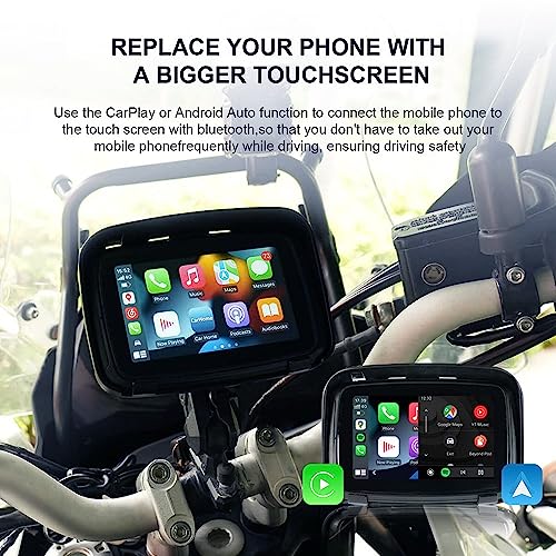 【Wireless Apple CarPlay e Wireless Android Auto】 Sostituisci il tuo telefono con un GPS per moto touchscreen più grande. Utilizzare la funzione CarPlay o Android Auto per collegare il telefono cellulare per collegare il touch screen con Bluetooth, in modo da non dover estrarre frequentemente il telefono cellulare durante la guida, garantendo la sicurezza di guida. Consentendoti di navigare, puoi effettuare chiamate e goderti la tua musica preferita senza interruzioni.