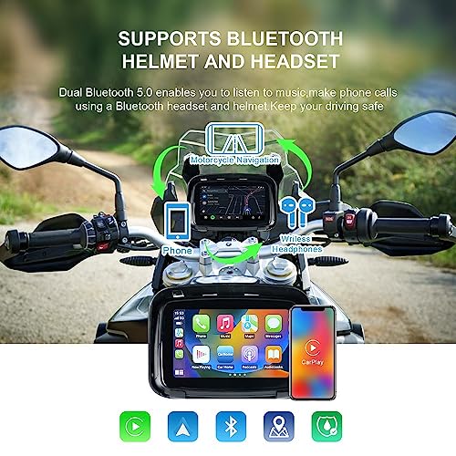 Sunweyer Schermo portatile per Carplay Wireless Android Auto per moto, touchscreen impermeabile IPX7 da 5 pollici, navigazione GPS automatica, doppio Bluetooth 5G, supporto Siri/Google Assistant
