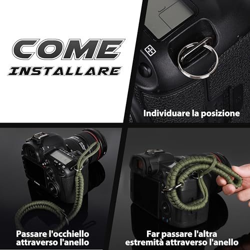 DUREVOLE: Realizzata in resistente paracord da 550, una robusta corda in nylon nota per la sua resistenza, il cinturino da polso per fotocamera SUNYA offre prestazioni affidabili nel corso di periodi prolungati di utilizzo.