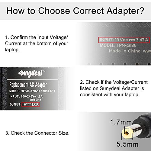SUNYDEAL Caricatore Notebook Adattatore PC Portatile 19v 3.42A 5.5x1.7mm per Acer Aspire/Travelmate/Extensa 1 3 5 A114 A311 A515 5000 7000 E1 E3 E5 E14 E15 E17 ES1 ES17 M5 R7-571G S3-951 V3 V17 Serie