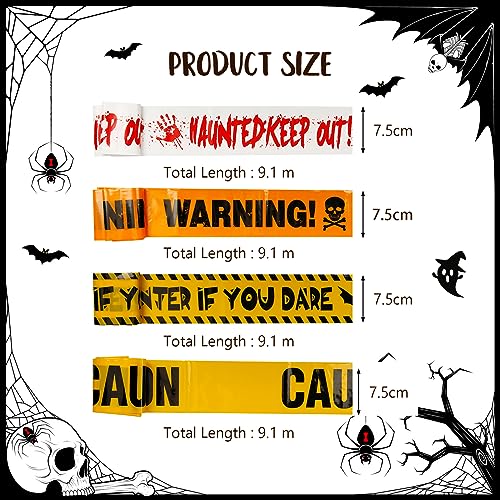 Nastri di avvertimento decorativi per Halloween: i nostri nastri di sbarramento per Halloween contengono 1 nastro per cauzione zombi, 1 nastro giallo cauzione, 1 nastro adesivo di avvertimento arancione, 1 nastro rosso per la prevenzione. Questo nastro di avvertimento per Halloween può essere utilizzato all'interno e all'esterno per ricordare a tutti di stare lontano dalla zona di spaventamento degli zombi e creare un'atmosfera di zombie ancora più spaventosa e spaventosa!