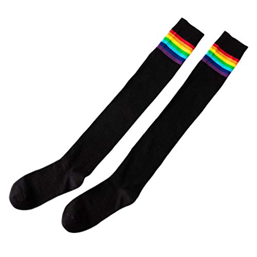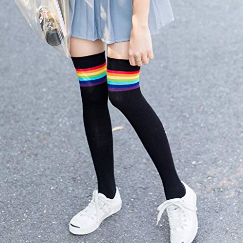 Suoryisrty Calzini 1 Paio Donna Ragazza sopra Il Ginocchio Calze Alte Calze Arcobaleno Patchwork Calze Lunghe Nere
