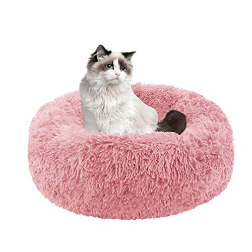 SUOXU Letto calmante per Gatti, Ciambella, Caldo e Morbido Cuscino in Peluche, con Morbido Fondo Antiscivolo per Animali di Piccola Taglia e Media e Dormire al Coperto (Rosa)