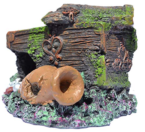 SUPA, Grande Scrigno del Tesoro e barile per Acquario/Acquario, Dettaglio Realistico, Circa 12 cm (Lunghezza) x 17 cm (Larghezza) x 19 cm (Altezza).