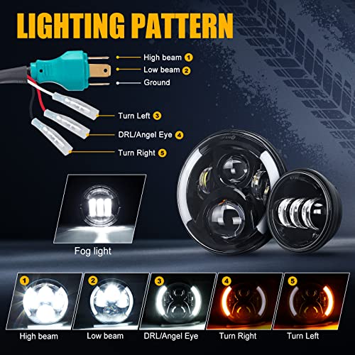 SUPAREE Faro LED 7 pollici con Halo DRL Segnale di direzione + 4,5 pollici Fendinebbia LED per Moto