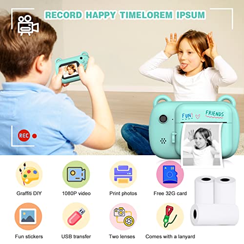 SUPBRO Fotocamera digitale per bambini con carta stampata, Macchina Fotografica Istantanea Bambini fotocamera per bambini con selfie con schermo da 2,4”fotocamera per bambini e scheda TF da 32 GB