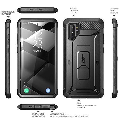 SUPCASE Cover Galaxy Note 10+ Plus, Custodia Rigida con Stand e Clip Cintura [Serie Unicorn Beetle PRO] Rugged Case per Samsung Galaxy Note 10+ Plus 2019, Senza Protezione per Display, Nero