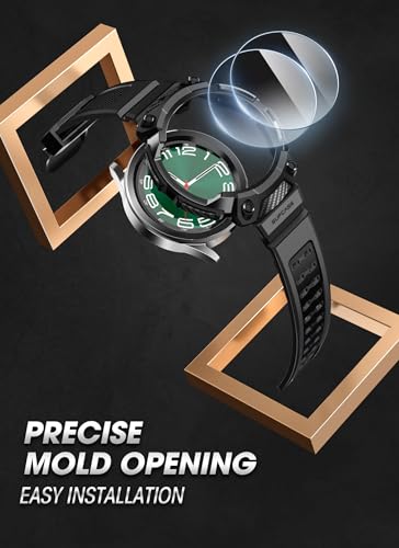 SUPCASE Custodia Unicorn Beetle Pro Serie per Galaxy Watch 6 Classic 47mm 2023, [Proteggi Schermo in Vetro Temperato da 2 Pezzi] Custodia Robusta con Cinturino (Nero)