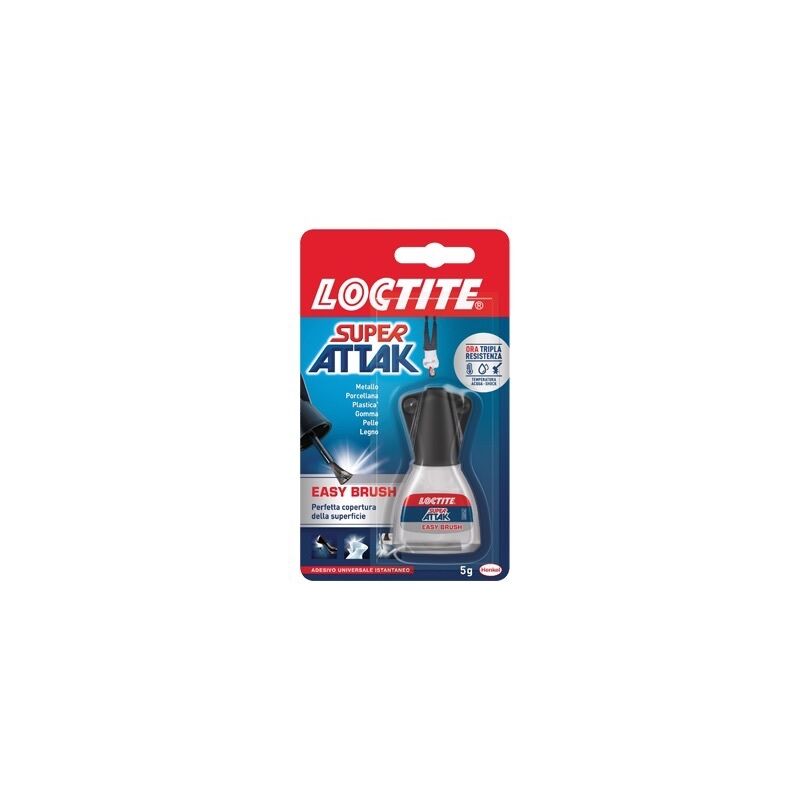 SUPER ATTAK EASY BRUSH Adesivo universale istantaneo dotato di pennello applicatore che rende facilissimo qualsiasi incollaggio permette di stendere perfettamente la colla senza sbavature. Blister 5 gr.