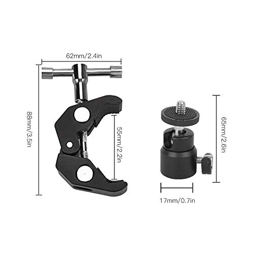 Super Clamp Mount, adattatore doppio morsetto multifunzione in lega di alluminio, attacco a vite 3/8 '' 1/4 '' con testa a sfera piccola per action cam, fotocamere, flash