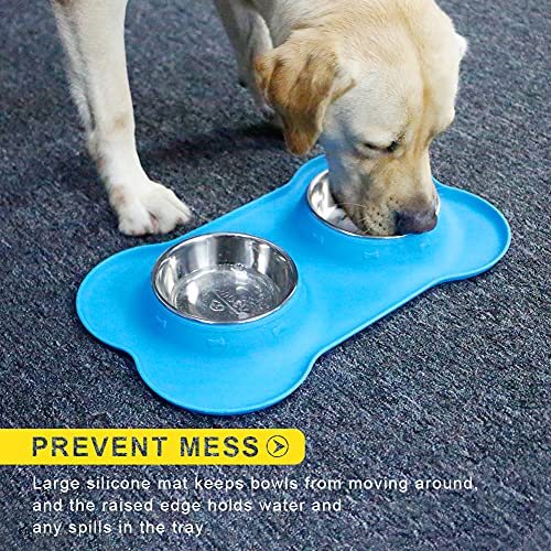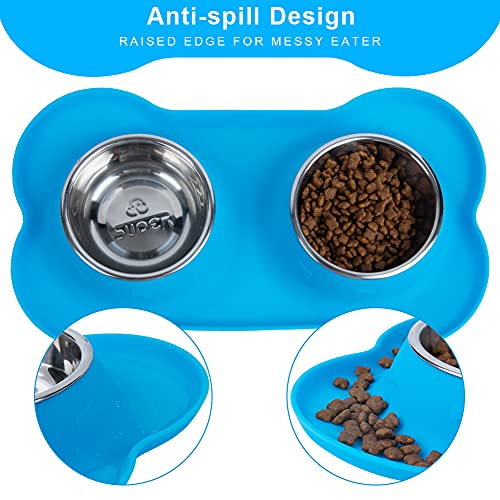 Super Design Ciotola per Cani e Gatti, Scodelle in acciaio inossidabile per Cani, Doppia Ciotola con Tappetino Silicone Antiscivolo per Cibo e Acqua