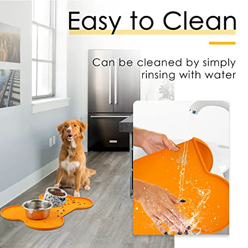 Super Design Tappetino Ciotola Cane Tappetino Silicone Anti-Scivolo - Tappetino Tappetino Sottociotola Cane Ciotola Cane Regalo del Cane Osso Arancione