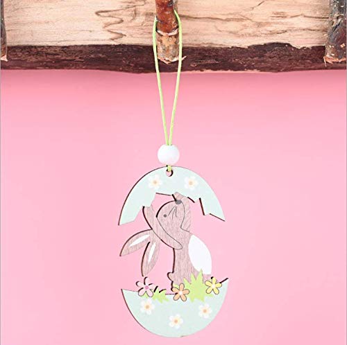 Super Idee, 16 x decorazioni pasquali in legno, con cordino, da appendere, con coniglietto pasquale, uccellini, gallina e uovo, decorazione primaverile, decorazione pasquale, regalo di Pasqua