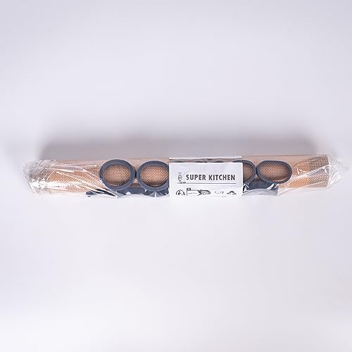 SUPER KITCHEN Mattarello in Legno Con 5 Dischi Regolabili Anello e Antiaderente Tappetino da Forno 60x40cm, Stuoia di Rolling della Pasticceria del Silicone, Spianatoia per Impastare (Grigio)