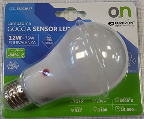SUPER LUMINOSA - LAMPADINA CON DOPPIO SENSORE CREPUSCOLARE E27 12W 75W LUCE FREDDA 6500°K