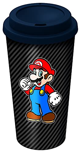 Super Mario Carbon - Tazza To-Go con coperchio, 520 ml
