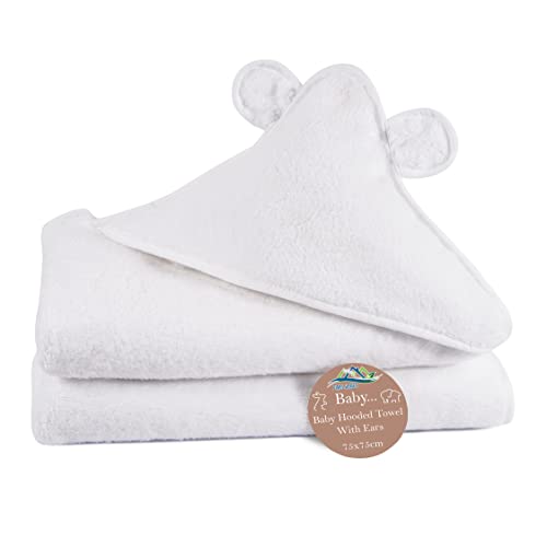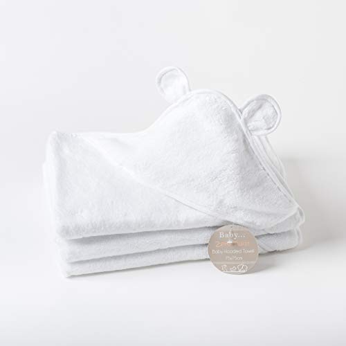 Regalo per baby shower - Questo asciugamano unisex bianco con cappuccio con orecchie è di dimensioni generose 75 cm x 75 cm. Quando si tratta di finire il bagnetto il destinatario non crederà quanto sia meravigliosamente morbido questo asciugamano con cappuccio, non lasciatevi sorprendere quando suonano per farti sapere.