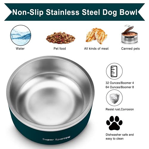 Super Sparrow Ciotole Per Cani, Ciotole Per Gatti, Acciaio inossidabile Ciotole Per Gatti Non Versamento Ciotola Cane per Cuccioli Di Gatti Piccoli Cani Di Taglia Media (1000ml-32oz, Jade)