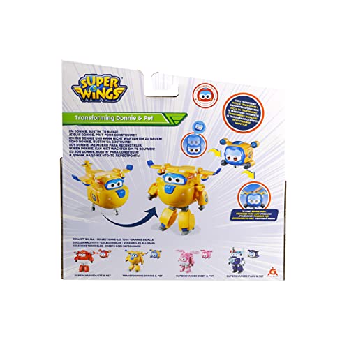 Super Wings EU750422 Transforming Supercharged Donnie & Mini Super Pet Donnie Toys for 3+ Year Old Boys Girls, Yellow