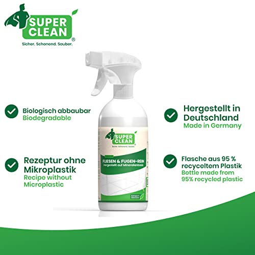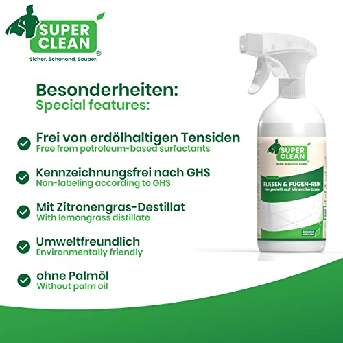 Superclean - detergente per fughe per piastrelle, bagno, doccia, WC, universale ed ecologico, contenuto: 500 ml e spazzola per le fughe