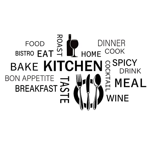 SUPERDANT Adesivo da Parete per Cucina Cucinare Parole Correlate Decalcomania da Parete in Vinile Modelli di Stoviglie per Cucina Sala da Pranzo Ristorante Decorazione da Parete Nero 30x59 cm