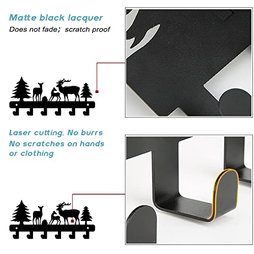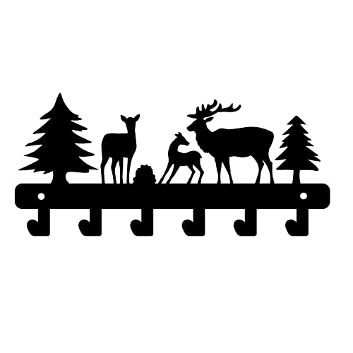 SUPERDANT Appendiabiti da Parete in Ferro Polar Christmas Elk Art Wall Hanger Decorativo Organizer Rack con 6 Ganci per Borsa Vestiti Chiave Sciarpa Decorazione da Parete Nera (15x33 cm)