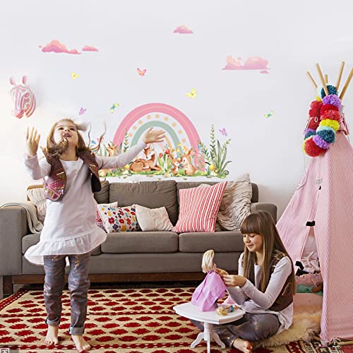 SUPERDANT Decalcomanie Da Parete con Animali Della Foresta Arcobaleno Adesivi con Coniglietto di Volpe Adesivo Da Parete con Farfalle di Prato Adesivo Da Parete con Piante Animali per La Camera