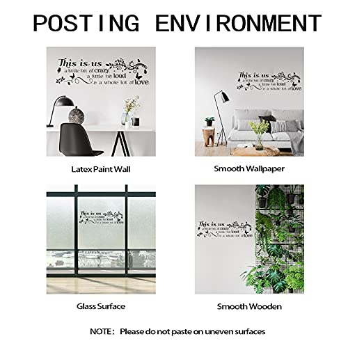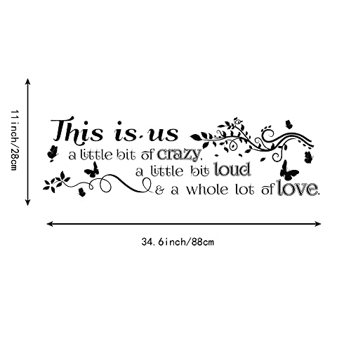 SUPERDANT 1 Foglio This Is Us Crazy Loud Love Wall Stickers Family Lettering Stickers Murali Adesivi Ispiratori per La Camera da Letto Decorazioni per La Casa, Nero (88x28 cm)